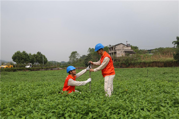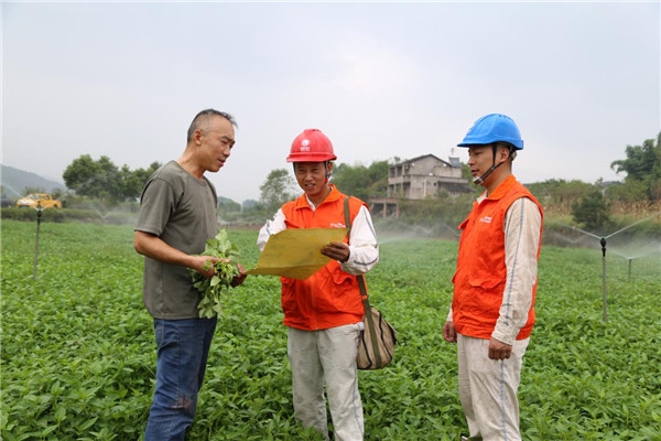 国网重庆璧山供电公司员工在璧山区八塘镇敢英村为蔬菜基地检查喷灌设施