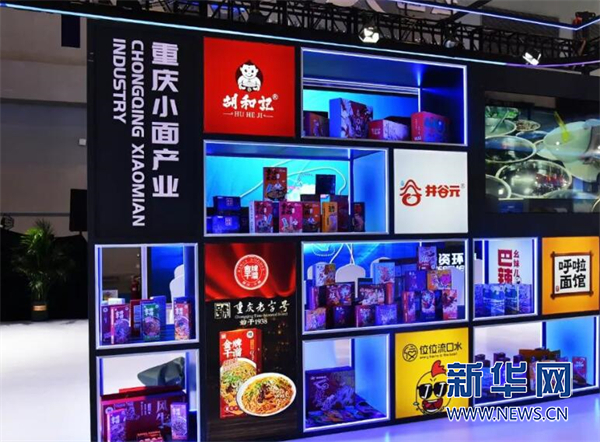 在大渡口展区,参展嘉宾及观众可以通过全息投影、LED魔方屏等观看内容丰富多彩的大渡口宣传片;也可以通过图文、视频了解全区五大百亿产业集群发展优势及特色,欣赏大渡口美丽的乡村田园风光;还能够通过互动装置,现场点播喜爱的音乐,或者体验羽毛球、网球等体育活动;展区中央尤为引人注目,集中展示了大渡口区重庆小面产业集群建设情况。孟非的小面、辣来主义、金牌干溜……14家企业带来的50余种展品,让许多参展嘉宾、观众驻足。