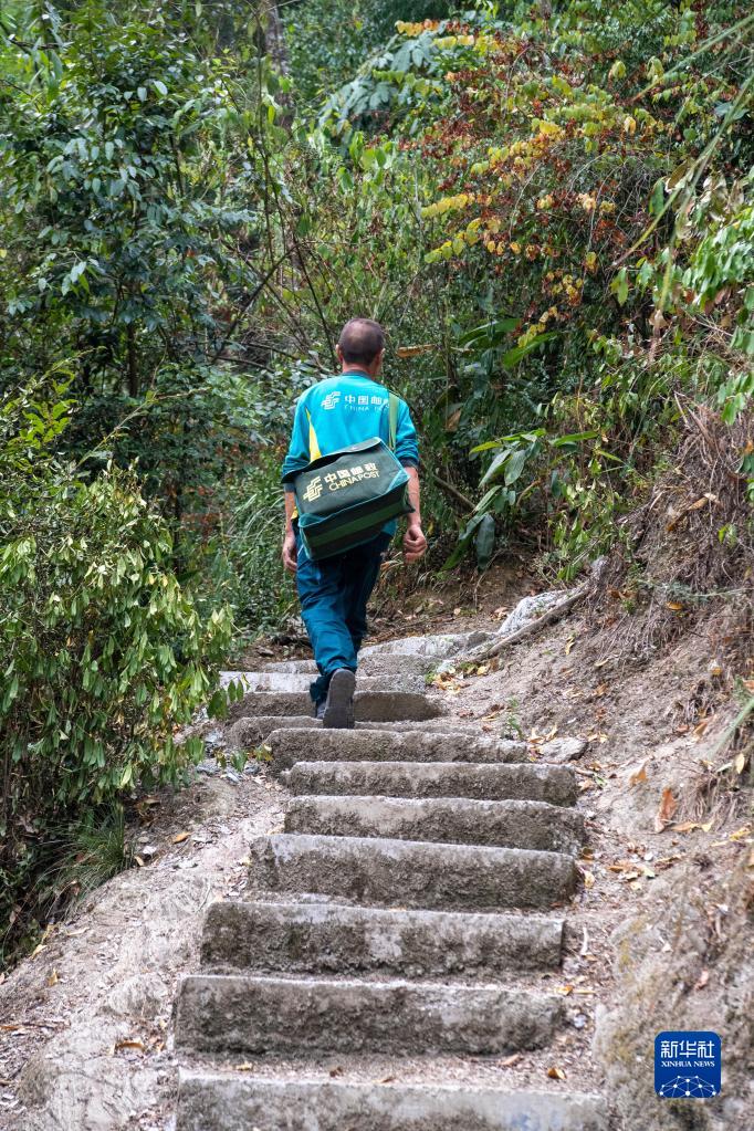 9月15日,投递员张永洪行走在何家岩村的山路上。新华社记者 唐奕 摄