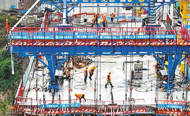 2月14日,重庆轨道交通18号线李家沱长江复线桥,工人正进行公路侧引桥混凝土浇筑。据介绍,李家沱长江复线桥是目前国内首座公轨同层非对称布局的大跨度钢箱梁斜拉桥,建成后将实现汽车和轨道同层行驶,预计今年底轨道侧达到通车条件。(特约摄影 钟志兵/视觉重庆)