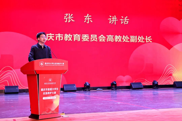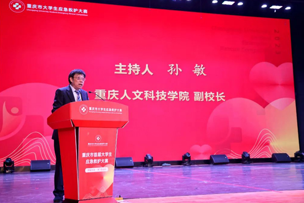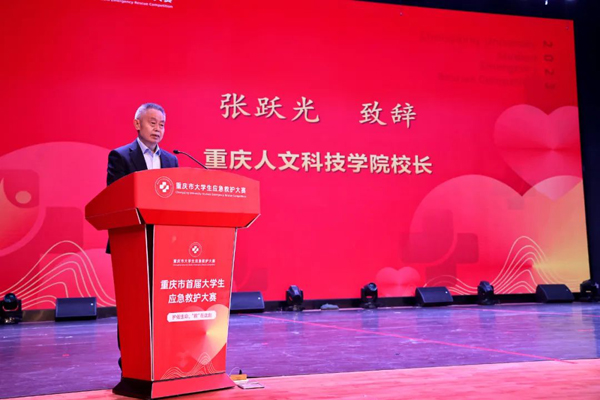 重庆人文科技学院校长张跃光在致辞中表示,希望以此次大赛为契机,进一步在大学生中扩大应急救护知识的普及力度,让更多人“懂救护、会自救、能互救”;希望同学们以此次比赛为契机,扎实掌握救护技能,赛出水平,赛出风格。