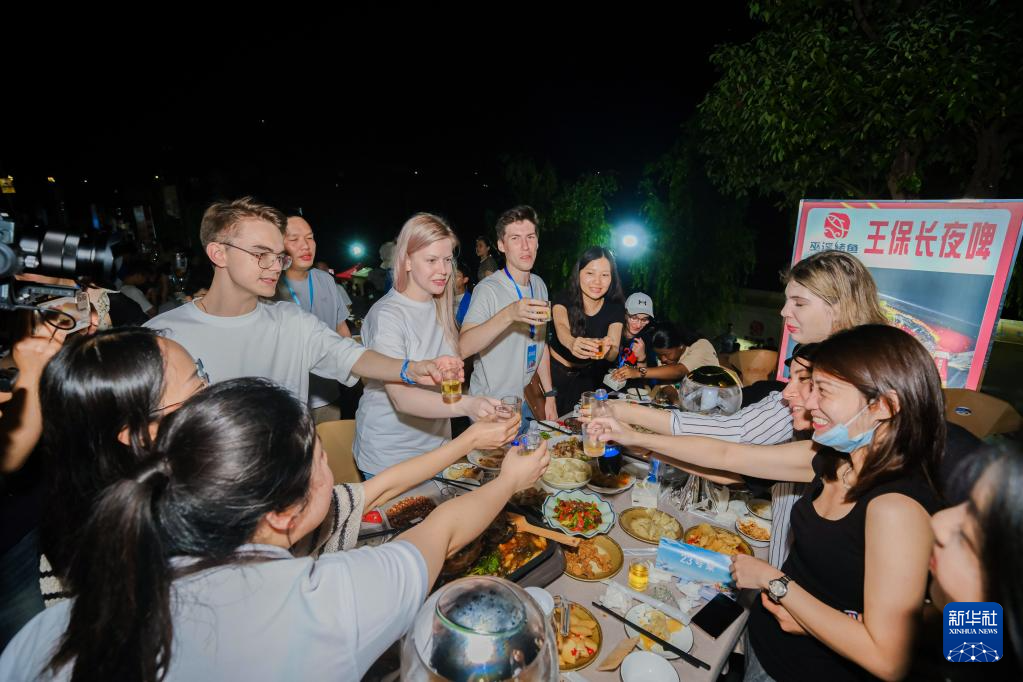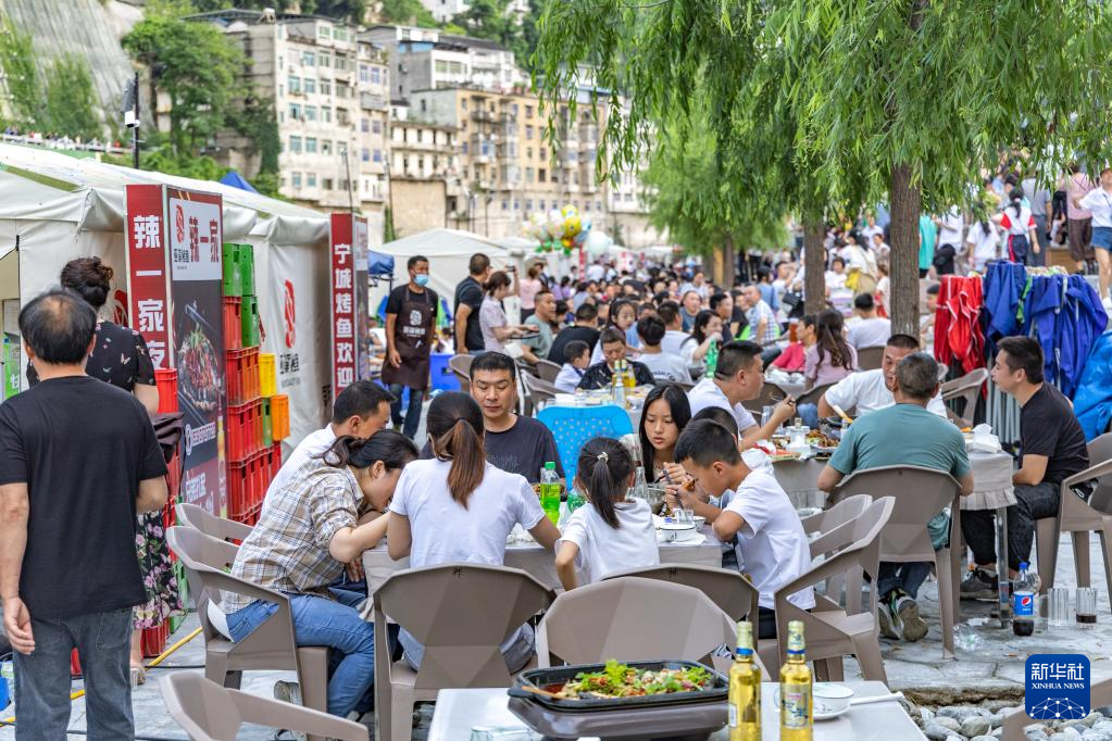 6月19日晚,2023重庆巫溪烤鱼文化节在重庆巫溪县宁河街道漫滩路的大宁古城正式启幕。大宁河畔千余张桌子一字排开,近万人同品巫溪烤鱼,共赏大宁河夜景。