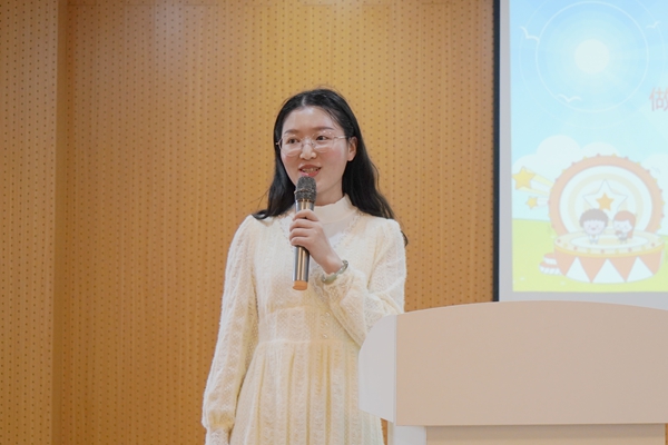 西政幼儿园老师刘祝平以《做老师沉浸、孩子享受的早操》为题分享了园区经验。“‘玩’在西政幼儿园里是头等任务,运动和游戏已经成了不可或缺的一部分。老师和孩子在早操中体会快乐,传递快乐,建立温馨有爱的情感连接。”刘祝平提出,早操活动要尊重儿童的自主性,释放孩子的自由与天性,让孩子在有序的混乱中,在双向的触动中回归儿童本真。