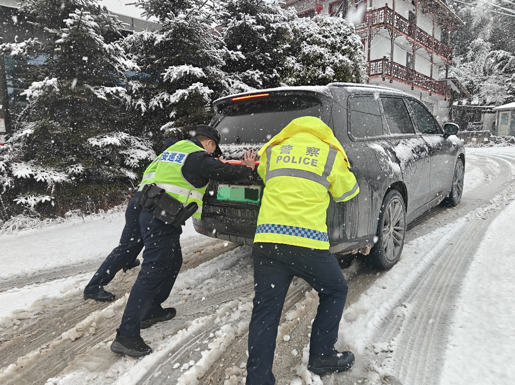 上午9时许,冷水派出所民警在巡查至辖区八龙村一路段时,发现一被困车辆,询问驾驶员后得知因大雪导致车辆原地打滑无法行驶,也未配备防滑链条,正当驾驶员一筹莫展之际,遇到了巡逻至此的派出所民警。大家商议后决定推车实施救援,在大家合力下,车辆最终成功脱困驶离该路段。同时,民警还在巡逻中积极为过境群众和车辆及时提供实时路况指引,全力确保群众的出行安全。
