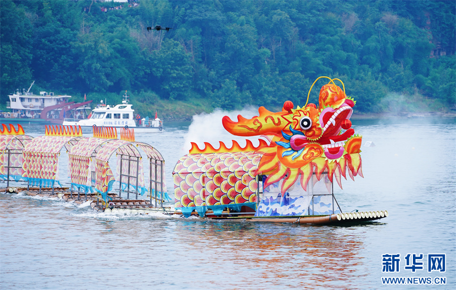 “神龙揽胜”通过水上游龙说唱的形式,推介安居资源、讲述安居故事、展望安居愿景。新华网 彭博 摄