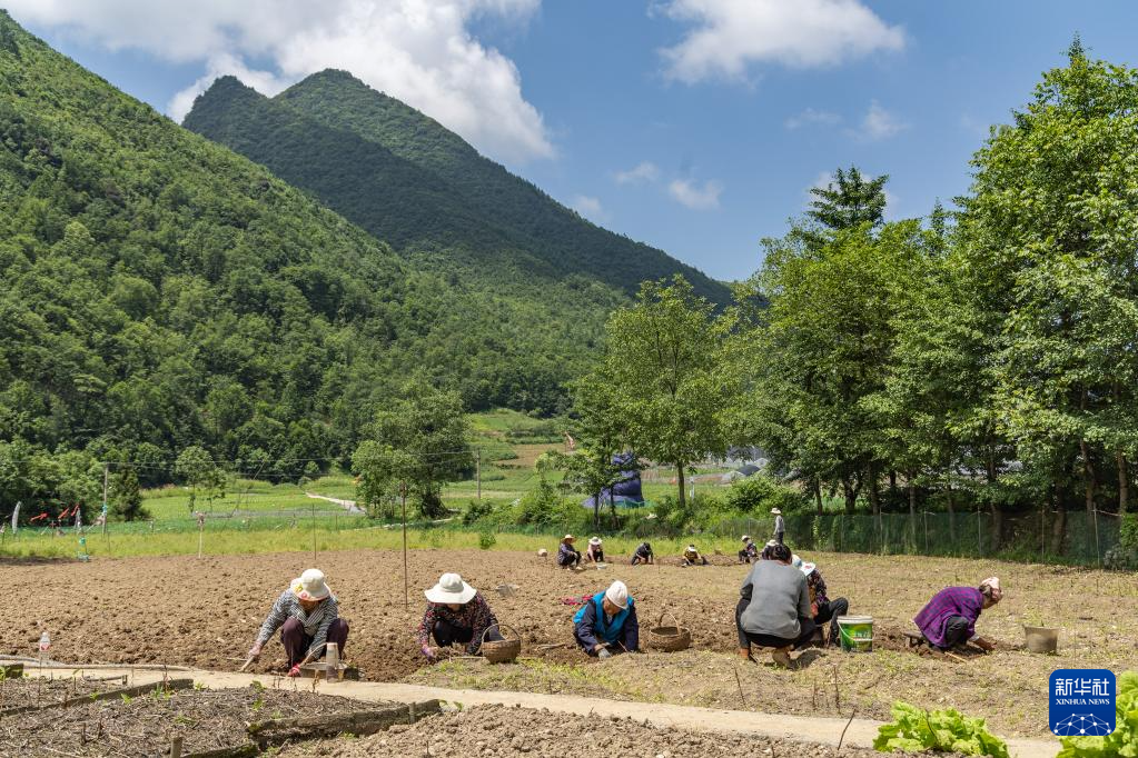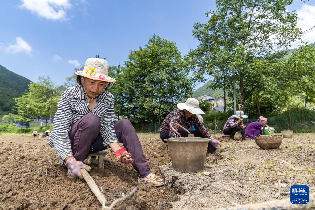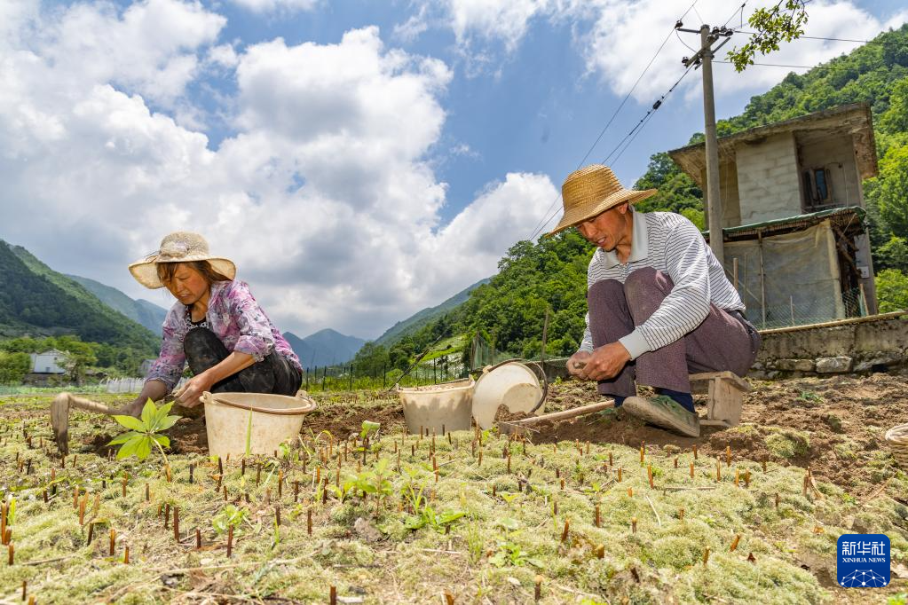 6月26日,在重庆市巫溪县兰英乡西安村,村民在采挖贝母。新华社记者 黄伟 摄