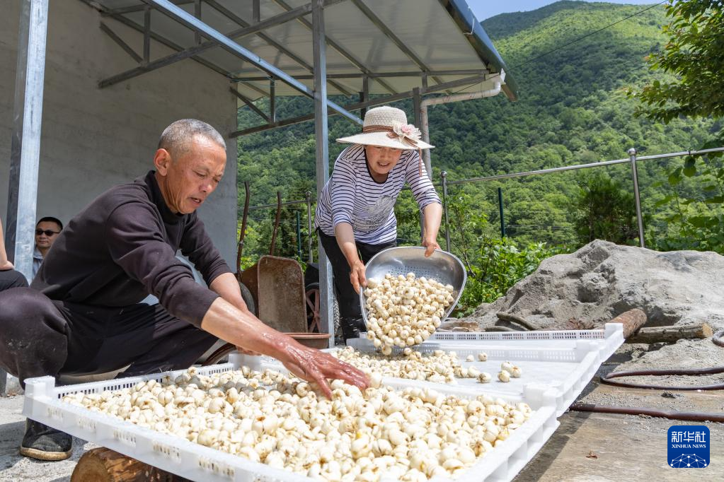 6月26日,在重庆市巫溪县兰英乡西安村,村民将清洗干净的贝母摊开晾干。新华社记者 黄伟 摄