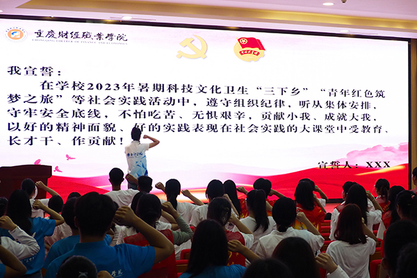 7月3日上午,重庆财经职业学院举行2023年暑期“三下乡”社会实践暨“青年红色筑梦之旅”活动出征仪式。
