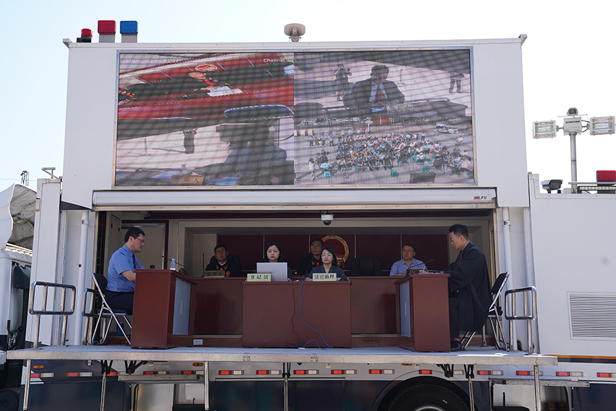 “现在开庭”。伴随着法官敲下法槌,巡回审判正式拉开帷幕。本次庭审设在巡回审判车上,并通过“车载便民法庭”的显示屏展示相关证据。