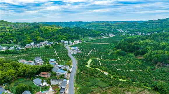 入伏以来的天气给人闷热不已的感觉,但行进在经过提档升级改造后的重庆市大足区高龙路中敖镇明月村平坦宽敞,沿线布满绿油油农作物产业拥抱的公路上,仿佛进入绿色的海洋,心情格外舒畅。