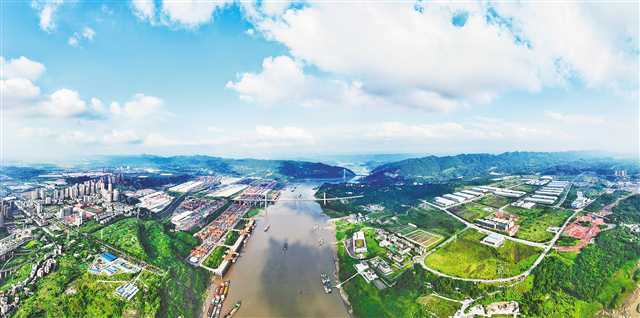 7月20日,重庆鱼嘴长江大桥北岸的果园港和南岸的重庆经开区东港物流园呈现出一派繁忙的运输景象。近年来,重庆铁路、公路和水上等交通运输飞速发展,成为我市经济持续向上发展的动力。特约摄影 钟志兵/视觉重庆