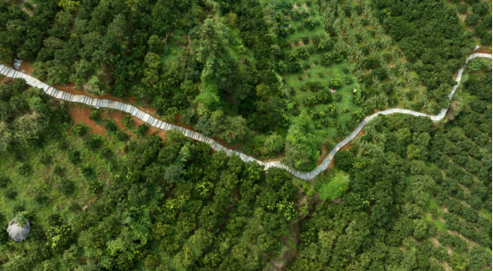 连日来,在重庆市秀山土家族苗族自治县洪安镇贵措社区“边城”农文旅融合乡村振兴示范区项目工地,工人们在脐橙园里正抓紧推进观光廊道、观景平台等工程施工。