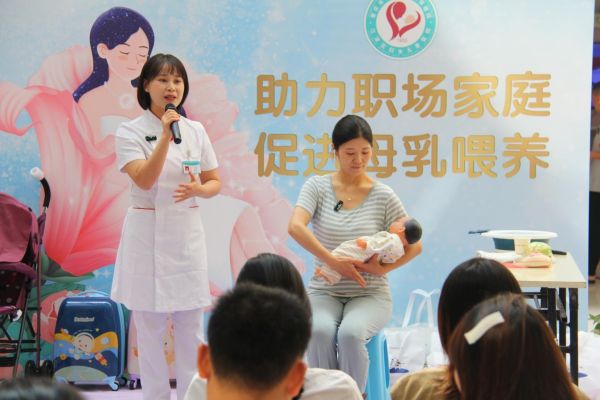 现场,该院产科护士长苏健围绕母乳喂养的好处、影响因素、喂养方法等展开了详细讲解、示教,并面对面指导孕妈妈母乳喂养技巧;同时,乳腺科医护人员通过情景剧的方式,就母乳喂养过程中堵奶、胀奶等常见问题进行了科普解答。
