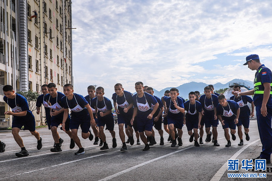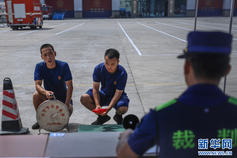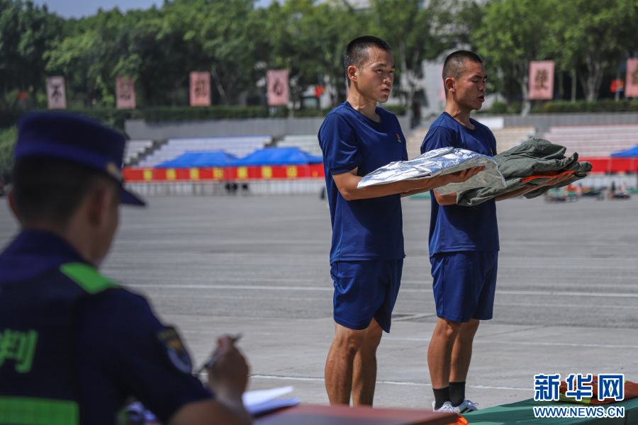 8月4日至7日,重庆新消防员入职教育训练大队298名新消防员参加初级消防员职业技能鉴定考核。图为技能鉴定考核现场。新华网 发