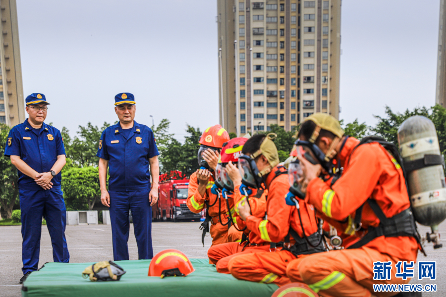 消防员正在识别特种防护装备。新华网 发