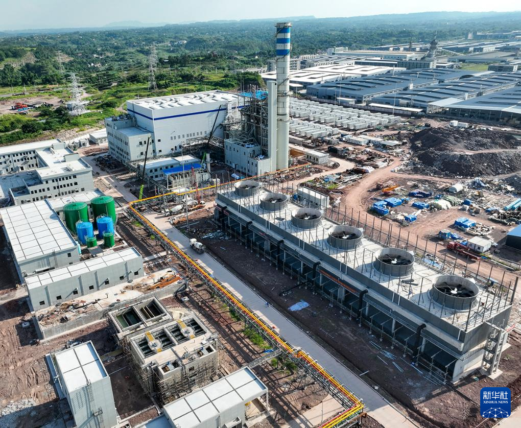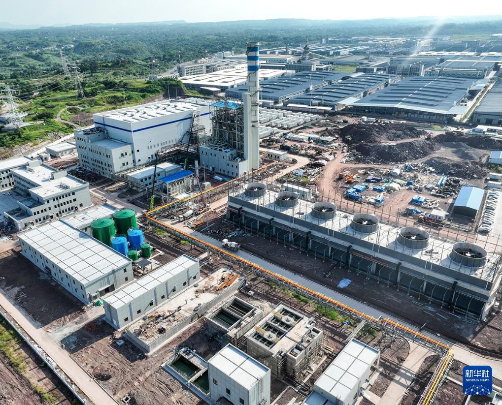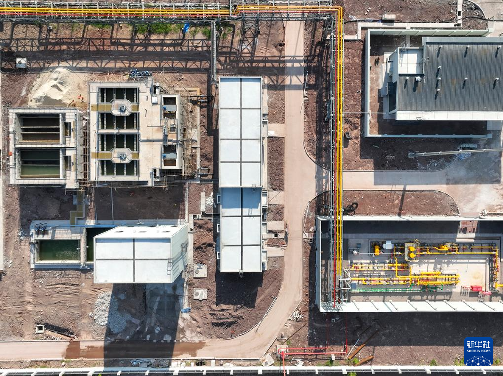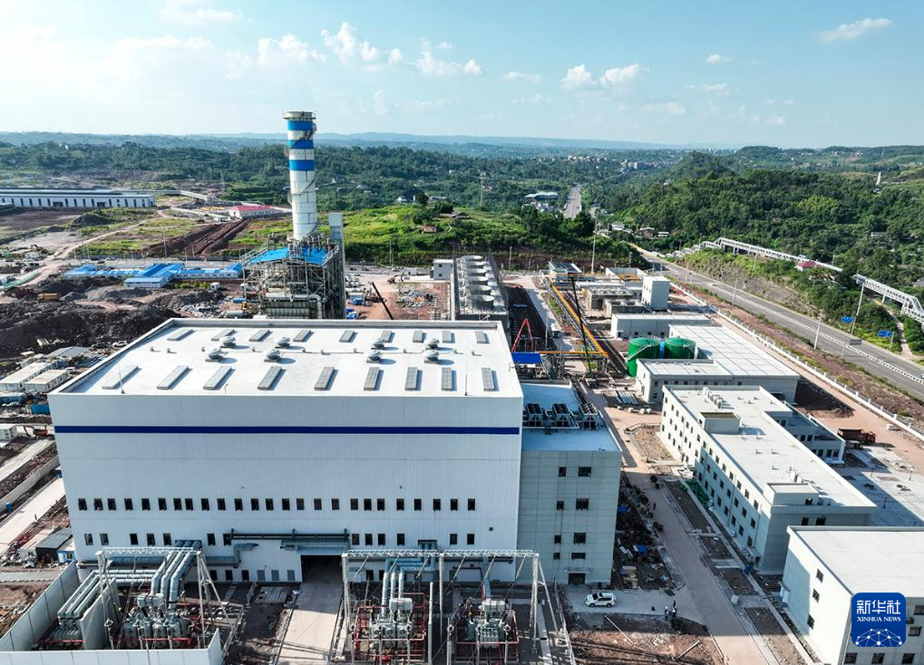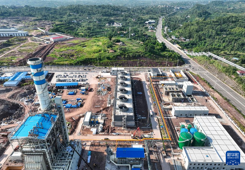 这是8月14日拍摄的建设中的重庆永川港桥园区“上大压小”热电联产项目(无人机照片)。新华社记者王全超摄