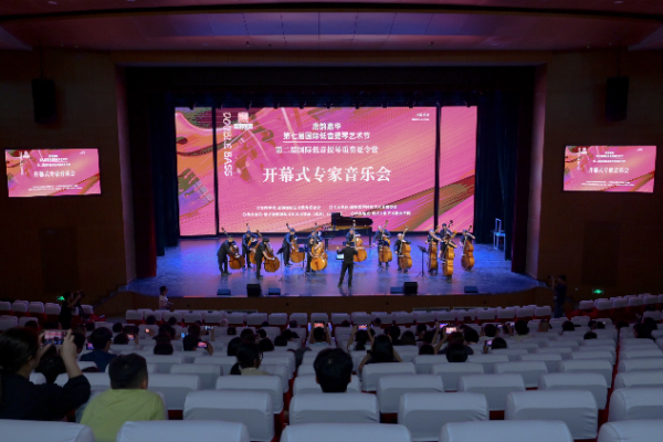 开幕式专家音乐会上,经典频出。观众在低音主旋律中,一同领略到低音提琴艺术的魅力:《G大调四重奏》旋律轻快雀跃,奢华但不浮夸,流畅的乐句中同时蕴含巴洛克音乐的华美与古典主义音乐的理性,浑厚的弦音与轻快的旋律产生奇妙的化学反应;西班牙语经典名曲《一束微光》融入宽广低沉的琴声,在浓浓化不开的伤感中增添一些深沉,夹杂一些轻快,令人忍不住轻舞,抒情又令人陶醉;《G弦上的咏叹调》充满诗意的旋律美,让观众穿越时空感受巴赫对生活的赞颂,对爱情的执着;《悲歌》没有沉重的哀伤,富有弹性的律动感,令人感到轻松,最终以一个诙谐的拨弦收尾,令人莞尔;《乔家大院》以大气磅礴的交响组曲让大家身临其境领略到晋商的铮铮风骨,感受到生生不息、团结奋进的民族精神,博爱仁义、开放独立的大国情怀……