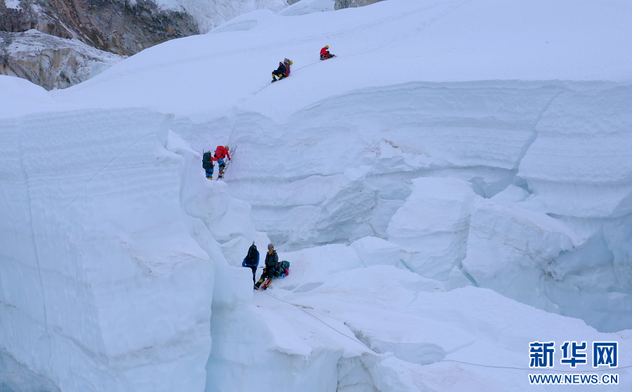 张洪团队正在攀登珠穆朗玛峰。新华网发(资料图)