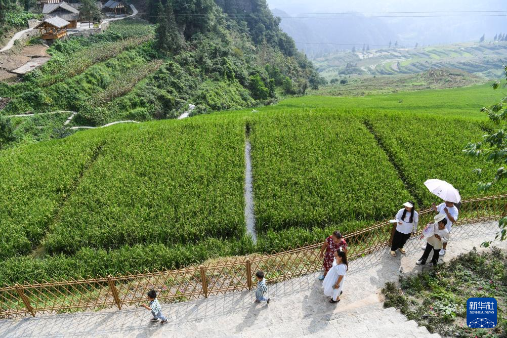 8月20日,游客在酉阳县丁市镇中坝村游览。新华社记者 王全超 摄
