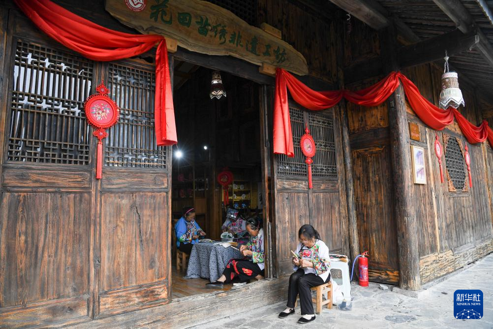 8月20日,酉阳县花田乡何家岩村村民在制作苗绣。新华社记者 王全超 摄