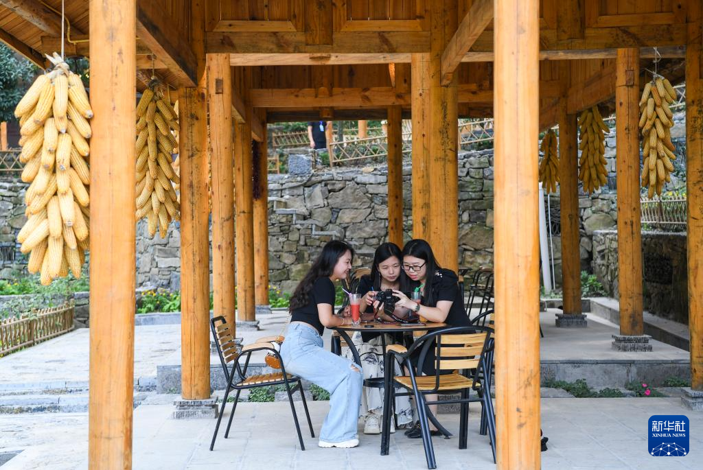 8月20日,游客在酉阳县丁市镇中坝村休闲。新华社记者 王全超 摄