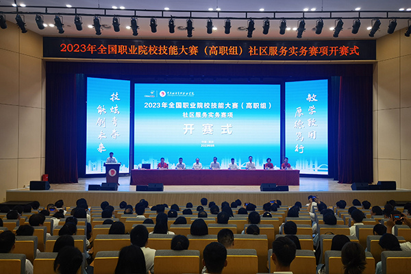 2023年全国职业院校技能大赛(高职组)社区服务实务赛项开赛式现场。
