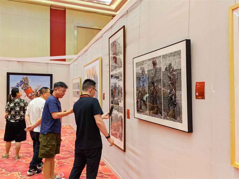 与会嘉宾在欣赏展出的作品。 记者 于鹏程 摄/视觉重庆