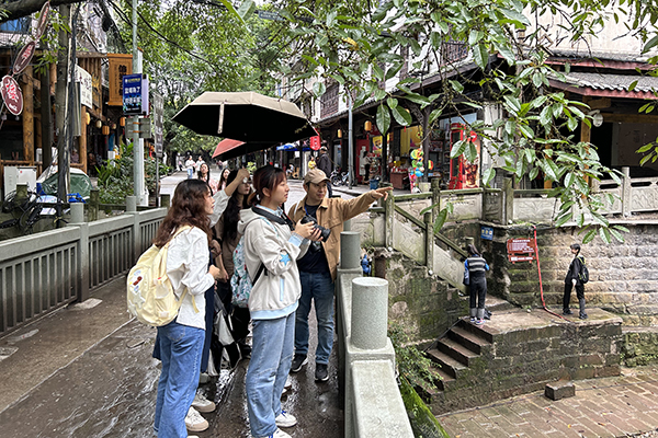 在北碚区偏岩古镇各景点,管理学院广告专业本科生以“美术赋能乡村振兴”探寻艺术乡旅,用画笔发掘美丽村落之美,用艺术服务乡村振兴。在北碚区柳荫镇和金刀峡镇旅游推介会上,管理学院新闻与传播专业的研究生积极探索“互联网+农业”背后的乡村振兴战略经验,为当地非遗文化的传承和传播、乡村文旅的宣传和发展等提出了系列策划方案。两个专业的同学们还在金刀峡镇开展了联合调研,对古建筑保护、产业融合发展、农旅结合、生态保护以及休闲小镇发展模式等多个方面进行深入调查,并与当地村民、企业和乡村干部深入交流,了解该镇乡村发展的历程,探讨未来规划与目标,助推文旅整合和文化振兴。