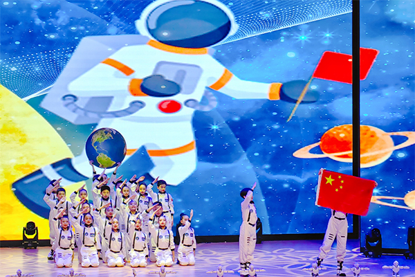 大坪小学教育集团带来情景剧《星火 薪火》,祖孙三代人同台对话,将渝中区红色文化喻为燎原的星星之火与代代相传的薪火。舞蹈《致敬红领巾》,歌曲演唱《有我》,情景朗诵《愿》展现渝中师生爱党爱国,立志报效祖国的信念;微情景剧《云程发轫,相聚渝中》,歌曲串烧《数大桥+长江之恋》,将渝中区的飞速发展、生活的美好变化以演、唱、跳等形式一一呈现;手语表演《强国有我》,啦啦操《红旗飘飘》,舞蹈《飞天逐梦》,音诗画表演式朗诵《成为这面旗》等节目演绎渝中教育面向未来,逐梦起航。