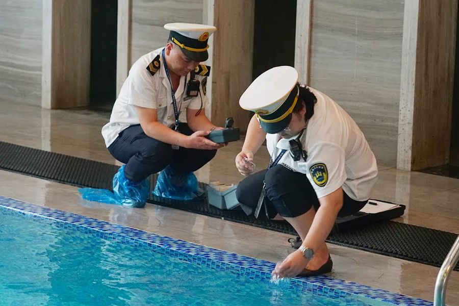 检查内容主要包括游泳场所的卫生管理情况、游泳场所开放条件、技术要求及管理情况等。同时,今年还重点加强了对水质的监测,重庆市卫生健康委员会专门委托第三方检测机构对游泳池水的浑浊度、pH、游离性余氯、尿素、菌落总数、大肠菌群及浸脚池水游离性余氯等指标进行抽样检测。