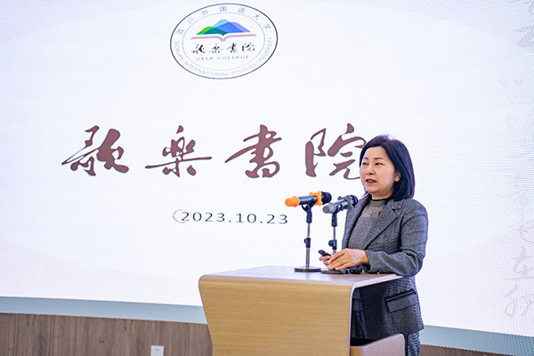 启动仪式上,四川外国语大学歌乐书院执行院长、教务处长刘玉梅介绍了歌乐书院建设的基本情况。刘玉梅表示,新文科建设是国家战略和社会经济建设的现实所需。为积极响应外语类高校新文科建设的需求,四川外国语大学立足外国语言文学学科优势,协同非外语学科的良好发展势头,打造“一核三型八维”的人才培养理念。