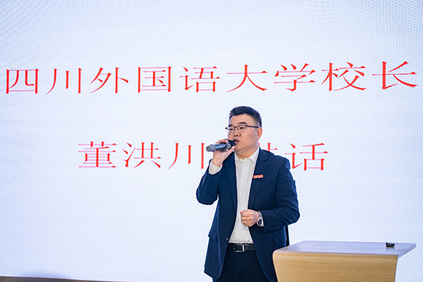 四川外国语大学校长董洪川讲话。