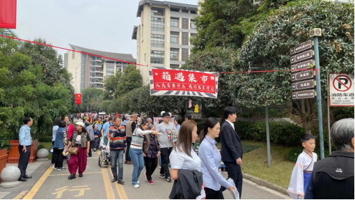 你以为这就结束了吗?不,集市的末尾还有食堂工作人员们精心张罗的“舌尖上的美食”摊位,逛饿了的老人、职工们也不忘来此试试手气,抽个“秘制油泼香辣子”,买点特制糕点零食,品尝一下独属于一福的好味道。