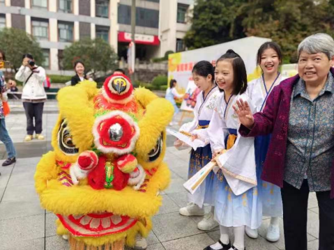 伴随着动感的锣鼓声,重庆理工大学的学生们开启了一场生龙活虎的醒狮表演,随后一套铿锵有力的军体拳表演展示了新时代军人的飒爽英姿;《生活麻辣烫》的本土明星们用精彩的评书表演唤起在场所有人内心深处的温馨记忆;巴蜀实验小学的孩子们也前来献爱,稚气未脱地唱响温暖的歌曲。围观的老人和家属们纷纷拍手叫好,拿起手机可劲地拍照、录像,共同留住这些美好而珍贵的画面。