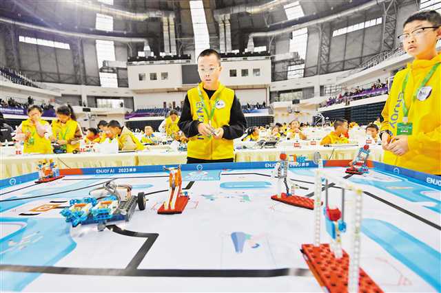 10月28日,ENJOY AI 2023赛季全球青少年人工智能竞赛中国西部赛暨2023世界机器人大赛-青少年机器人设计大赛重庆选拔赛在西南大学举行。来自重庆、陕西等地的1000多支队伍逾2000名选手在规定时间内独自完成程序编写、机器人组装等任务,并按照比赛规定操作机器人。