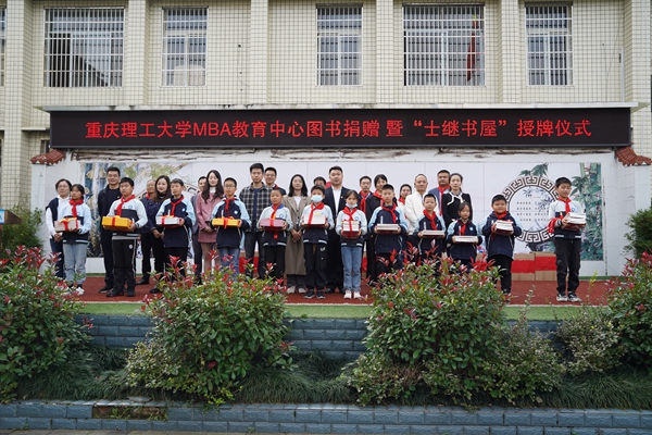 11月7日,重庆理工大学MBA首个“士继书屋”在南川区庆元镇中心小学揭牌。