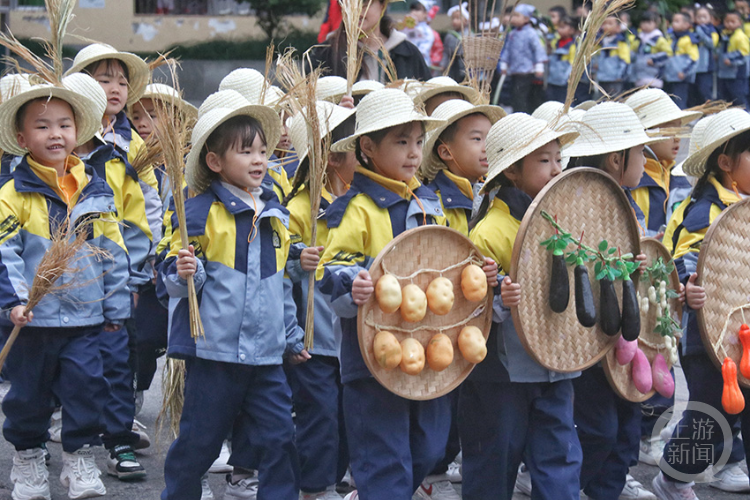活动现场,500余名师生及家长分成“南瓜队”、“红薯队”、“玉米队”、“香蕉队”、“土豆队”、“甘蔗队”,以“春耕”“夏种”“秋收”“冬藏”为主线,一场以农耕为主题的运动会就此展开。