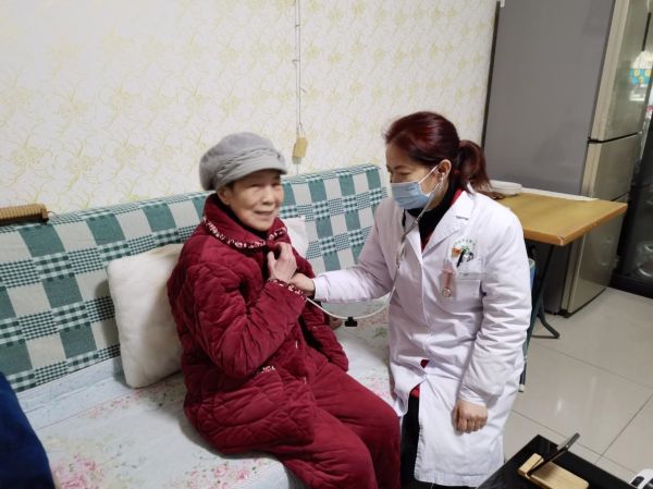 家庭医生团队长、主治医师杜小静上门为居民做检查。