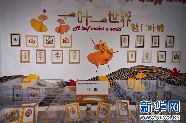 柳荫镇中小幼学校乡村美育博物馆中展示的叶雕作品。新华网 刘磊 摄