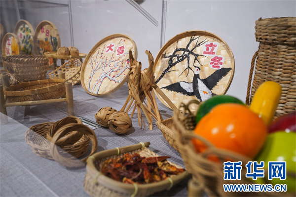 柳荫镇中小幼学校乡村美育博物馆中展示的编艺作品。新华网 刘磊 摄
