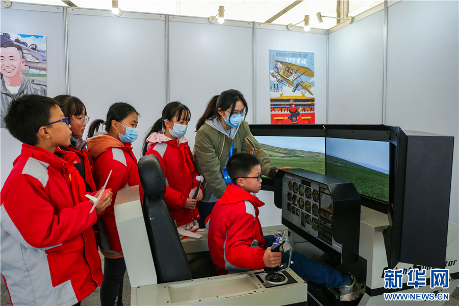 梁平区桂香小学的学生体验飞行模拟器。新华网发(熊伟 摄)