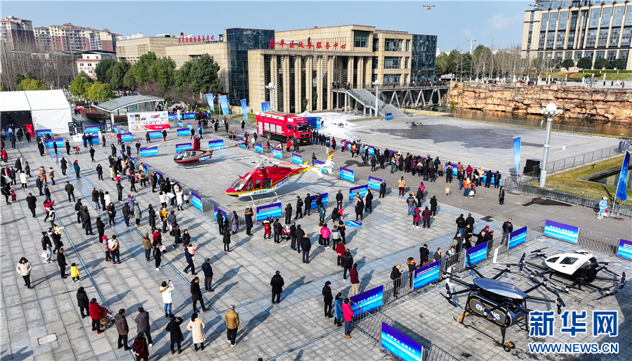 在都梁广场,前来观看通用航空器靜态展览及飞行表演的市民络绎不绝。新华网发(熊伟 摄)