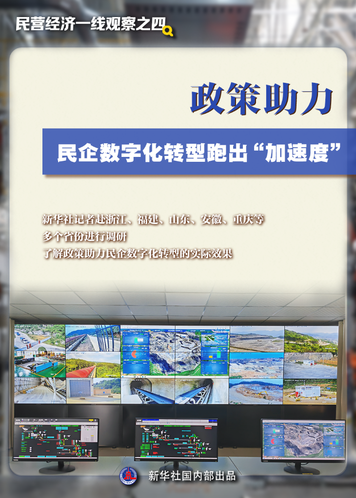 近期召开的中央经济工作会议提出,要大力推进新型工业化,发展数字经济,加快推动人工智能发展。时至年终,新华社记者赴浙江、福建、山东、安徽、重庆等多个省份进行调研,了解政策助力民企数字化转型的实际效果。