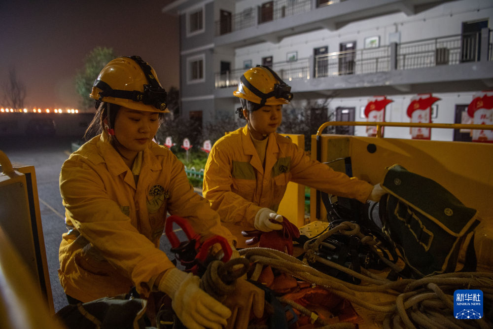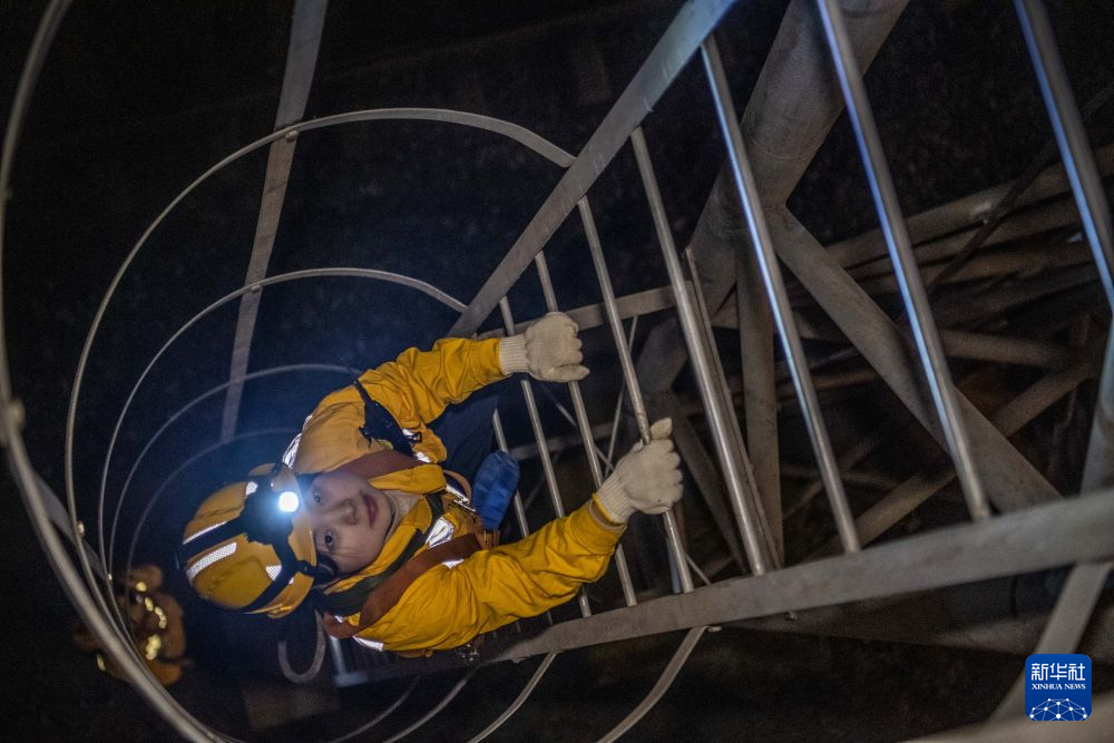 “00后”女孩何雪和母思琪是中国铁路成都局重庆供电段兴隆场电力工区的两名电力线路工。每个夜晚,她们和工友背负数公斤重的工具材料,从地面沿着近70度的爬梯攀上22米高的电塔和17米高的灯桥,对这里的5000余盏灯进行巡检维修,确保编组站场的照明安全。