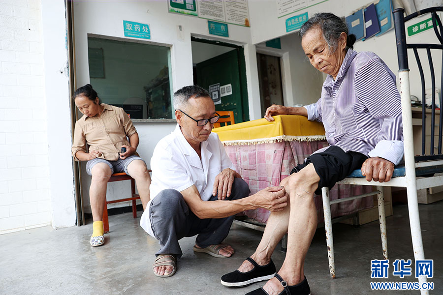 在重庆市黔江区黑溪镇苏维村卫生室,乡村医生为村民患者治疗(资料图片)。新华网发(杨敏 摄)
