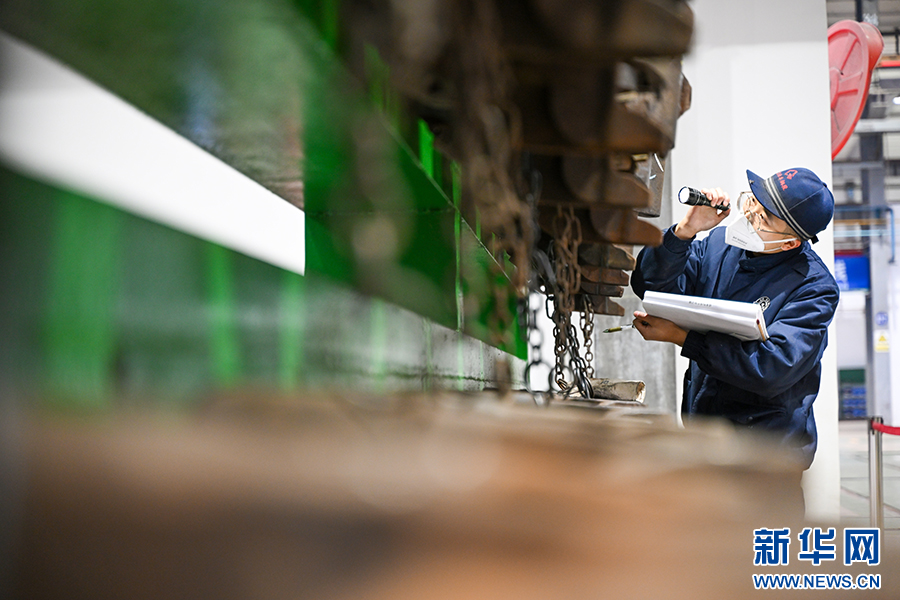 中国铁路成都局集团有限公司重庆西车辆段车辆钳工正在对钩缓缓冲装置进行清点作业。新华网发(刘彪 摄)