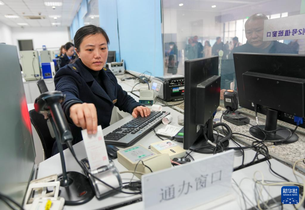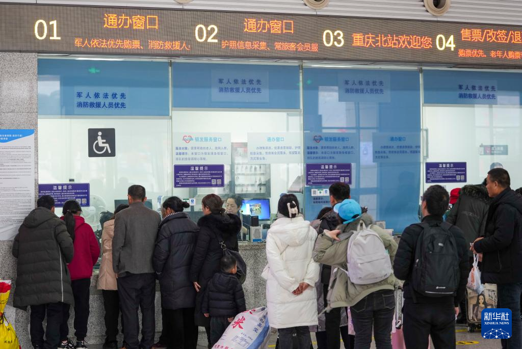 1月31日,重庆北站售票厅的购票窗口工作区内,工作人员在“通办窗口”为旅客提供售票服务。
