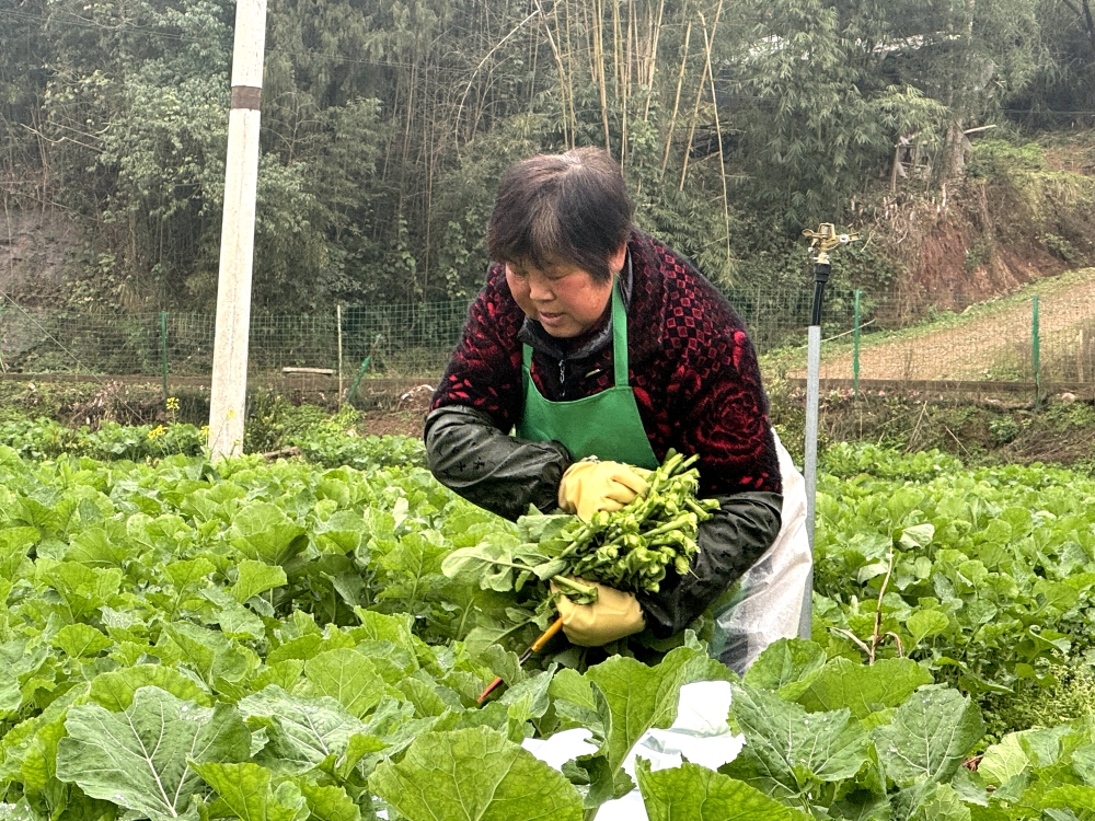 大足区回龙镇幸福村农户正在采摘油菜苔。受访单位供图