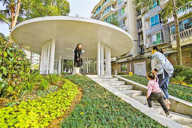 2月19日,西部(重庆)科学城西永街道西永路,市民正在口袋公园里玩耍。