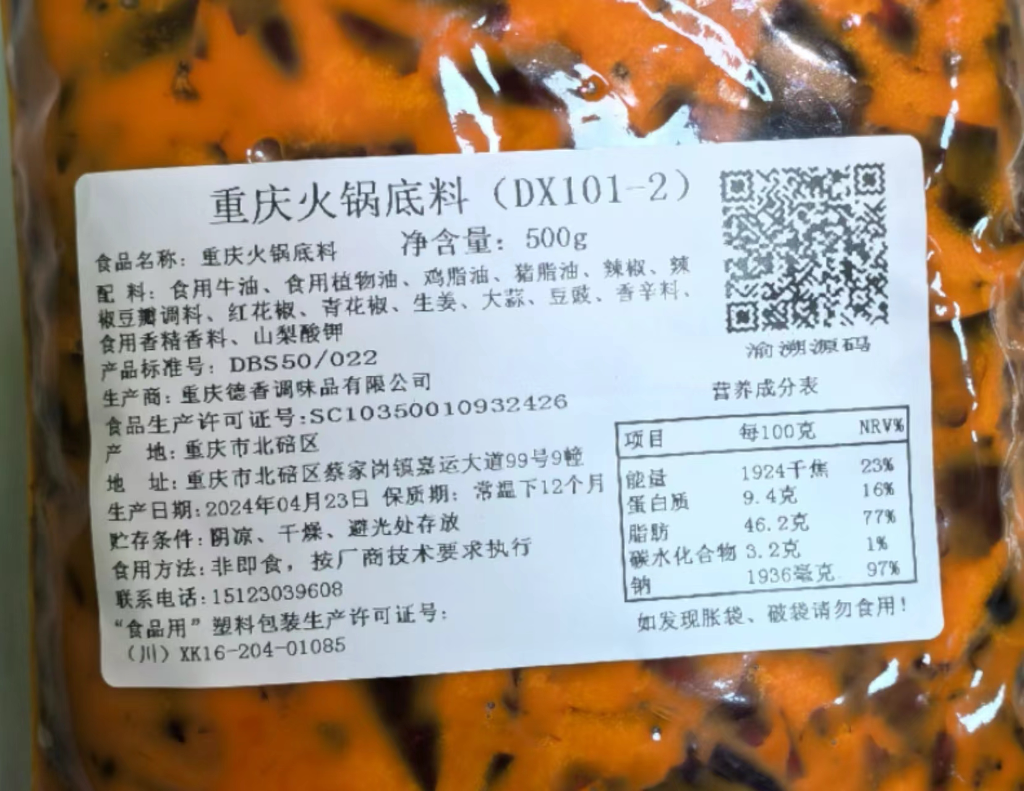 记者从重庆市北碚区市场监管局获悉,近日,重庆市首张带有渝溯源标志的食品标签在北碚区正式投入使用。目前,已有多家生产企业主动在食品标签显著位置张贴展示“渝溯源码”。